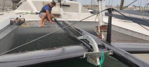 - Why We Chose Dyneema for Our Catamaran Trampoline (And How to Install It)Author: Shayne and Anna After completing our major carbon fiber front beam transformation, the final piece was installing a trampoline worthy of the upgrade. We chose Dyneema netting—the same high-performance material used for racing halyards—and installed it using professional separate lashing techniques. This approach creates an incredibly tight, safe surface that outperforms conventional trampoline systems in… Read more: Why We Chose Dyneema for Our Catamaran Trampoline (And How to Install It)