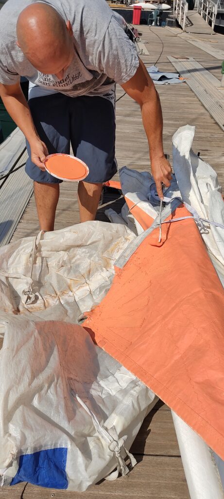 By 2 a.m., we were battling a temperamental sewing machine. By 4 a.m., the stitching was finally done. After a few hours of sleep, we were painting the repair and finishing the leech line by hand. The boat was ready for its test.