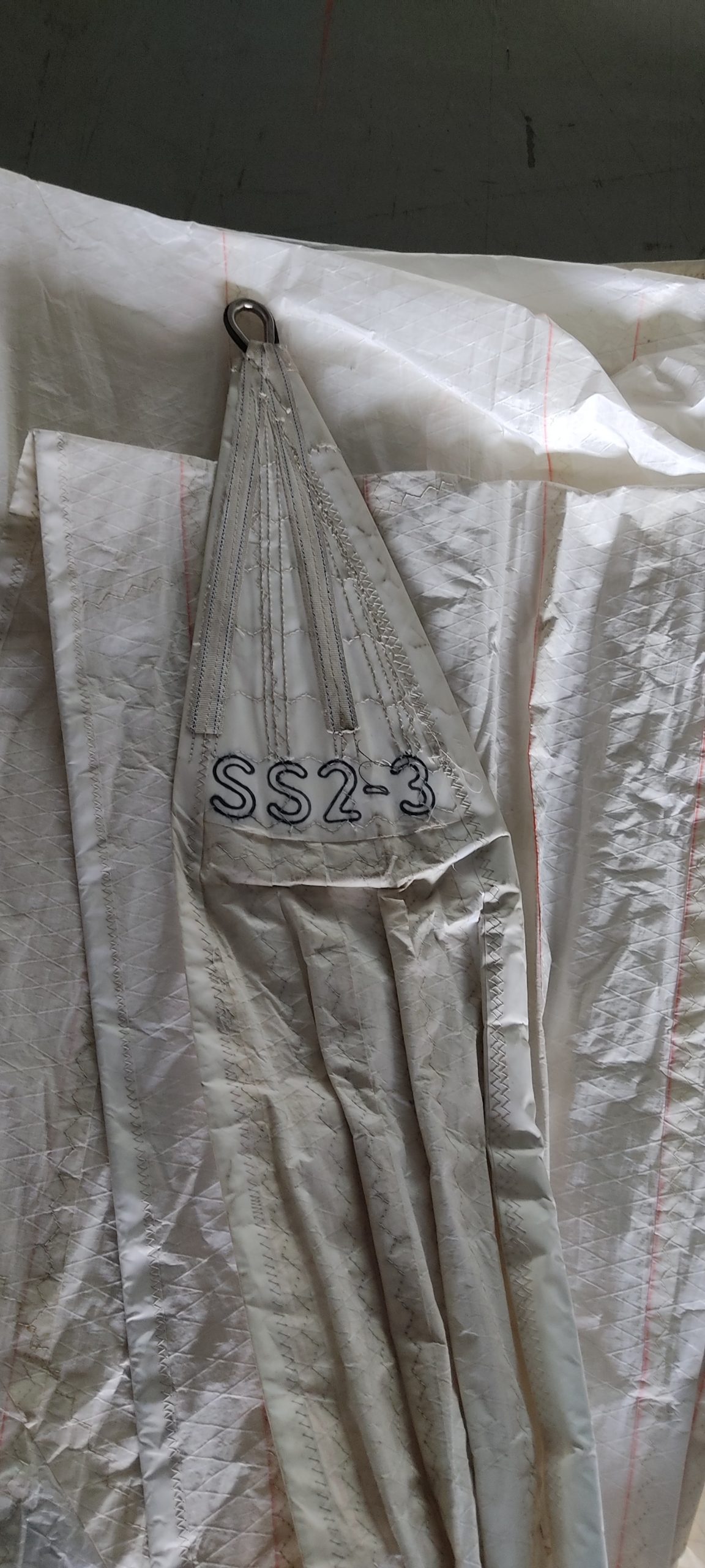 A spinnaker staysail or in this case a SS 2-3 refers to the type and design number of the sail. In this particular case it is a spinnaker staysail design number 2. The number 3 means it is the third one of this design built.