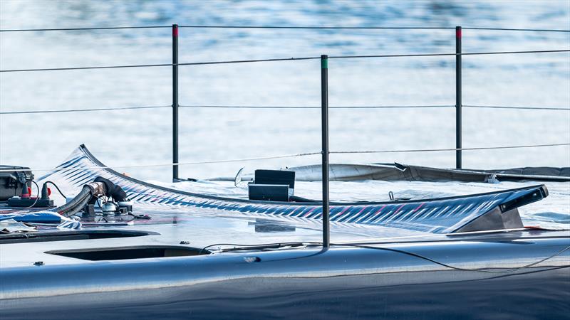 When the staysail is flown, the jib (J1) is often sheeted independently to the primary winches via these outboard cars. This allows the crew to make sail changes without a “bareheaded” maneuver—hoisting one sail while the other is still drawing. It’s a setup borrowed from the Gunboat 68s, refined here to allow for easy offshore sail changes.